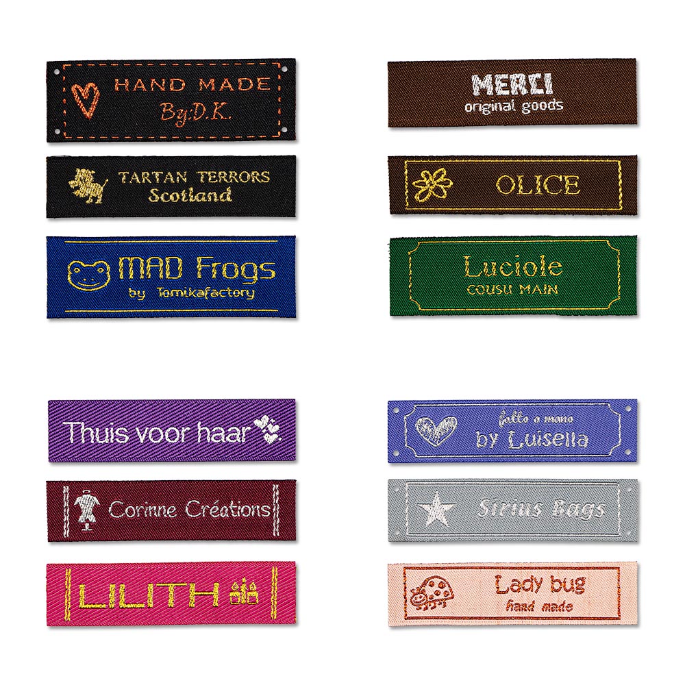 Wunderlabel bietet unterschiedlichsten Materialien von gewebten und bedruckten Nähetiketten: Polyester, Tyvek, Satin-Polyester, Baumwolle, Baumwollimitat. Sie sind in verschiedenen Größen, Farben und Faltarten erhältlich. Die Aufnäher lassen sich selbst gestalten – ob mit eigenem Design, Symbol oder Text.